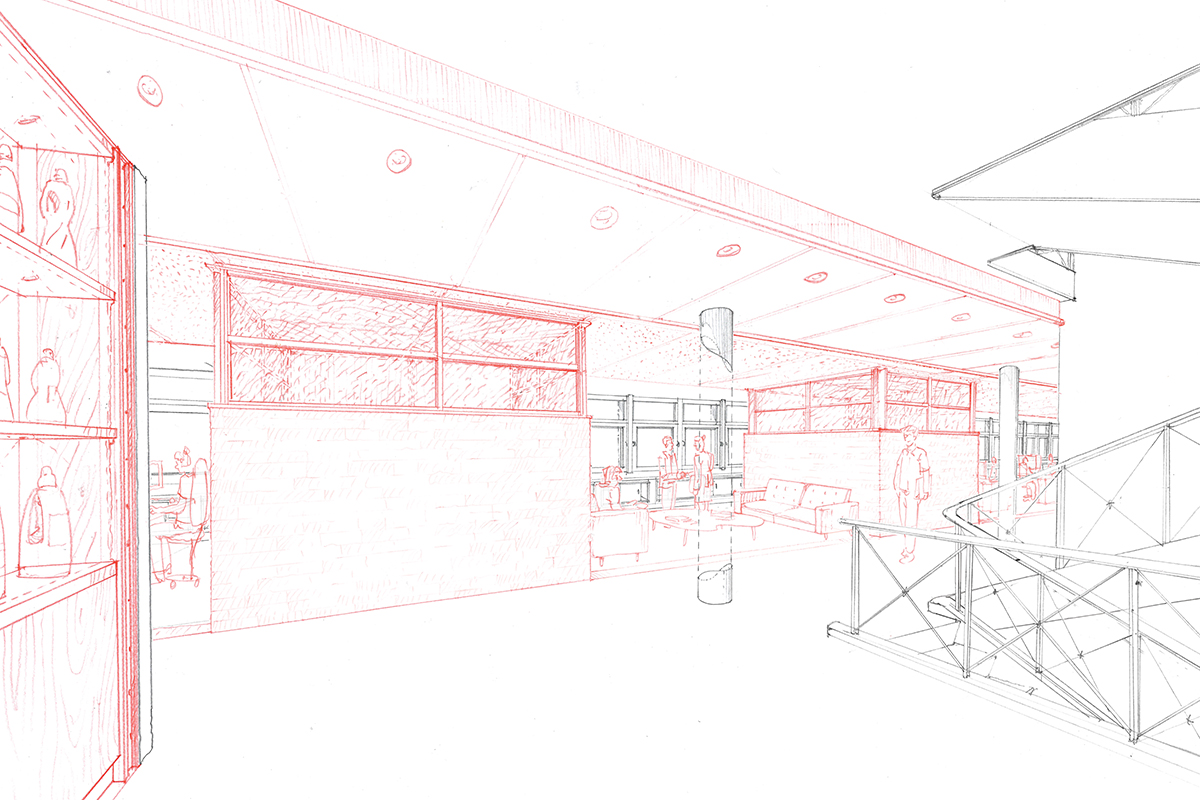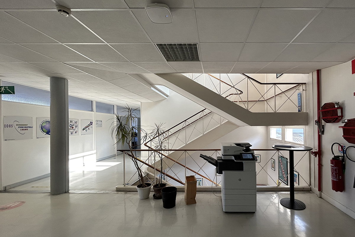 Réaménagement des espaces de travail à l’intérieur d’un bâtiment des années 1960, amélioration de la ventilation et du confort d’été, réemploi des éléments de second-œuvre d’origine.