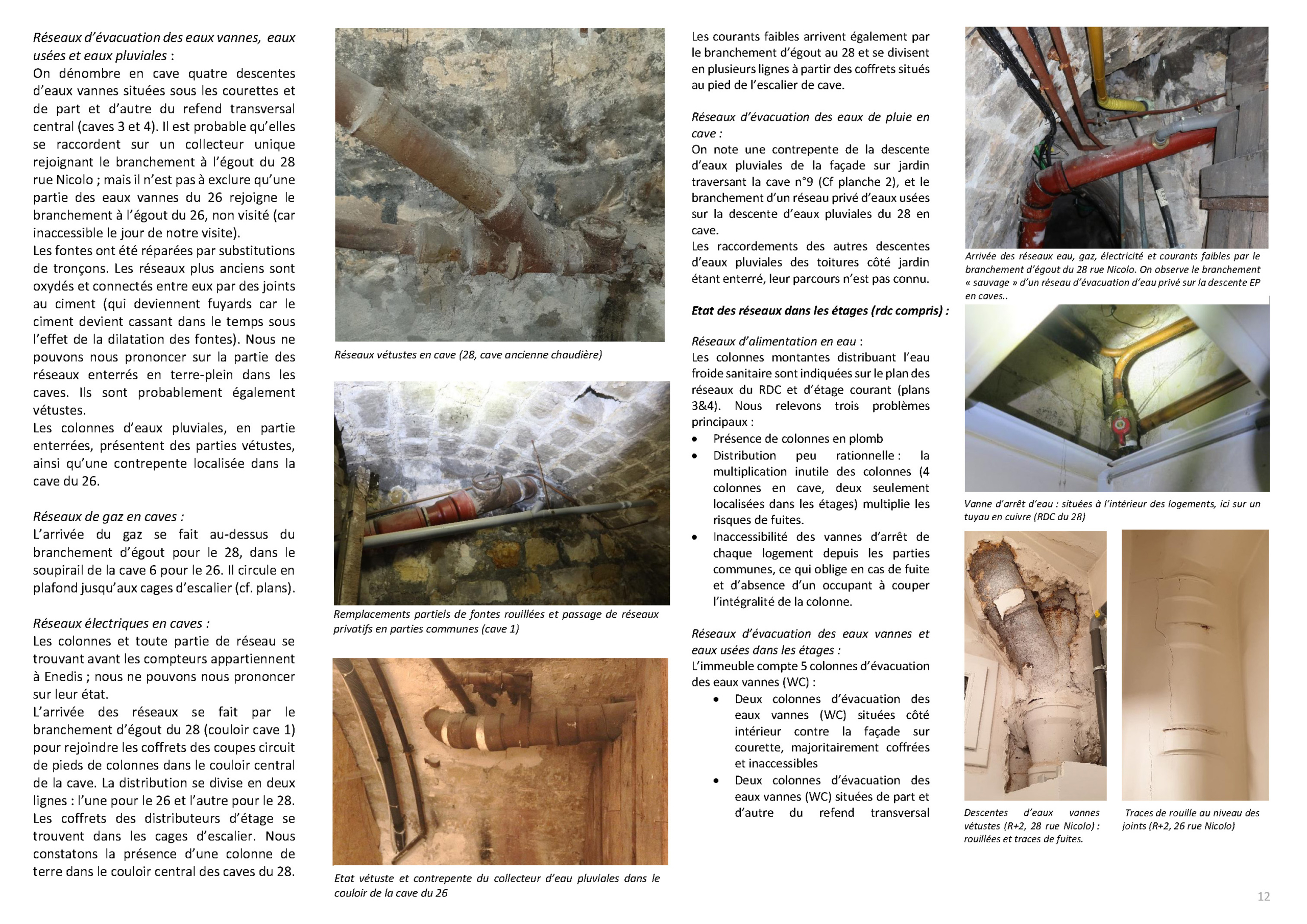 Immeuble env 1840 , R+4+combles sur un niveau de caves voûtées / Façades sur rue et cour en moellons + planchers bois / 12 appartements