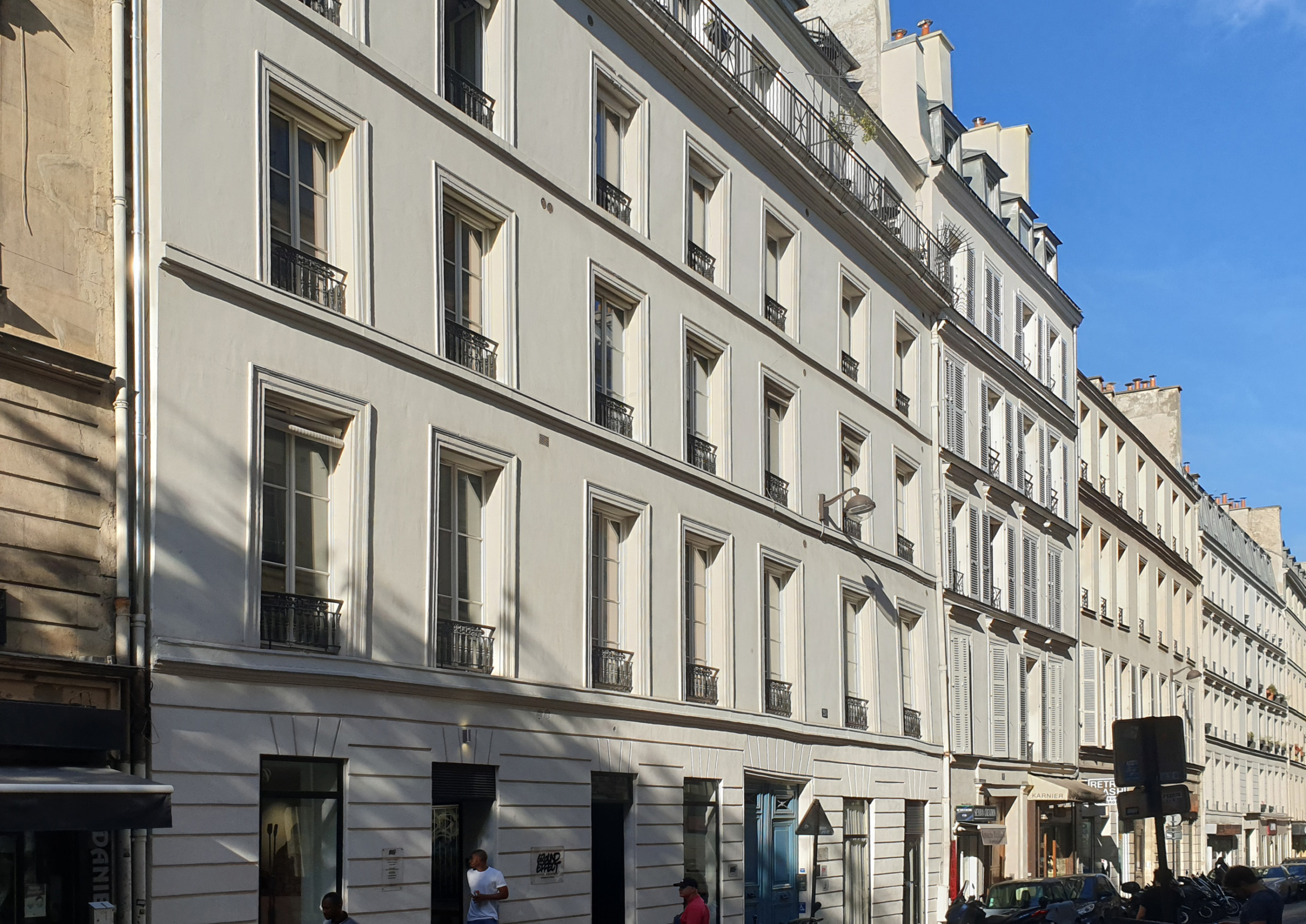 Immeuble constitué d’ouvrages datant des 17, 18 et 19ème siècles, R+5+combles sur un niveau de caves voûtées / Façades sur rue et cour et refends mêlant pierre de taille, moellons et pan de bois + planchers bois / 10 appartements + 2 locaux commerciaux à rez-de-chaussée.